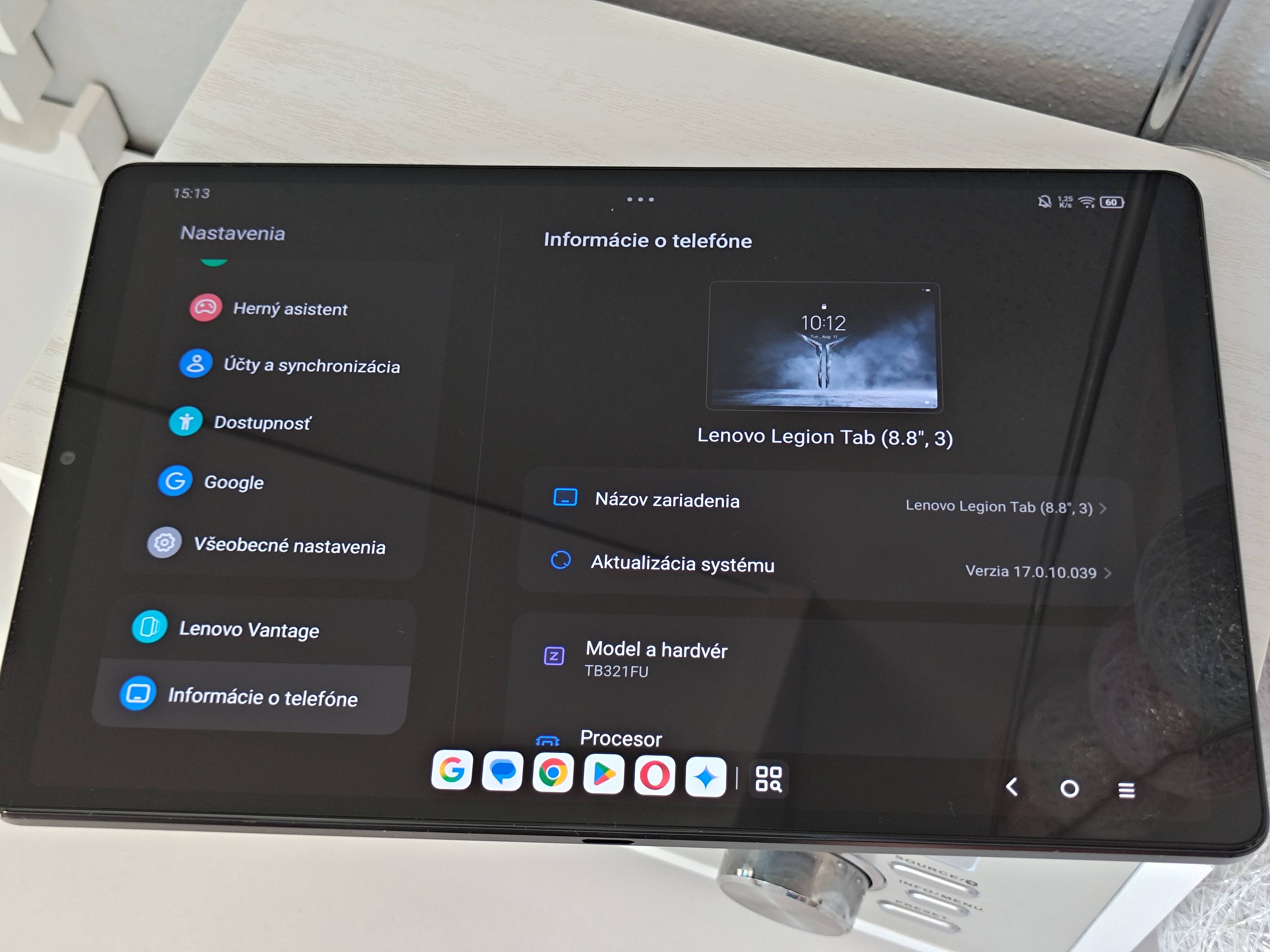 Špecifikácie zodpovedajú hernej kategórii – 8,8-palcový IPS displej s rozlíšením 2560 × 1600 px a 144 Hz obnovovacou frekvenciou, zaručí mimoriadne plynulý obraz so slušnou ostrosťou. Výkon zabezpečuje procesor Snapdragon 8+ Gen 1 s 12 GB RAM a 256 GB rýchleho úložiska, čo patria medzi priemer parametre v tomto segmente. V zariadení nájdete aj kvalitné stereo reproduktory s podporou Dolby Atmos a nadstavbu Legion UI, ktorá beží nad Androidom 15. Systém je zároveň silne optimalizovaný na výkon.
