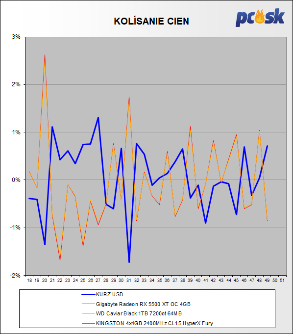 Posledné týždne šli ceny hlavne smerom nahor. Niektoré výrazne. Najväčšie zmeny zaznamenali procesory a pamäte. Kurz dolára stúpol o 0,75%. Príjemné čítanie Vám praje Pavel Čech.