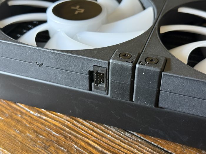 Aby Deepcool udržal čistý dizajn, na LQ360 nájdete ventilátory, ktoré sú medzi sebou prepojené (Voltage, RGB podsvietenie), takže v skrinke nemusíte schovávať „desiatky“ káblov. Mimochodom, ventilátory sú rovnako podsvietené ako LCD displej.