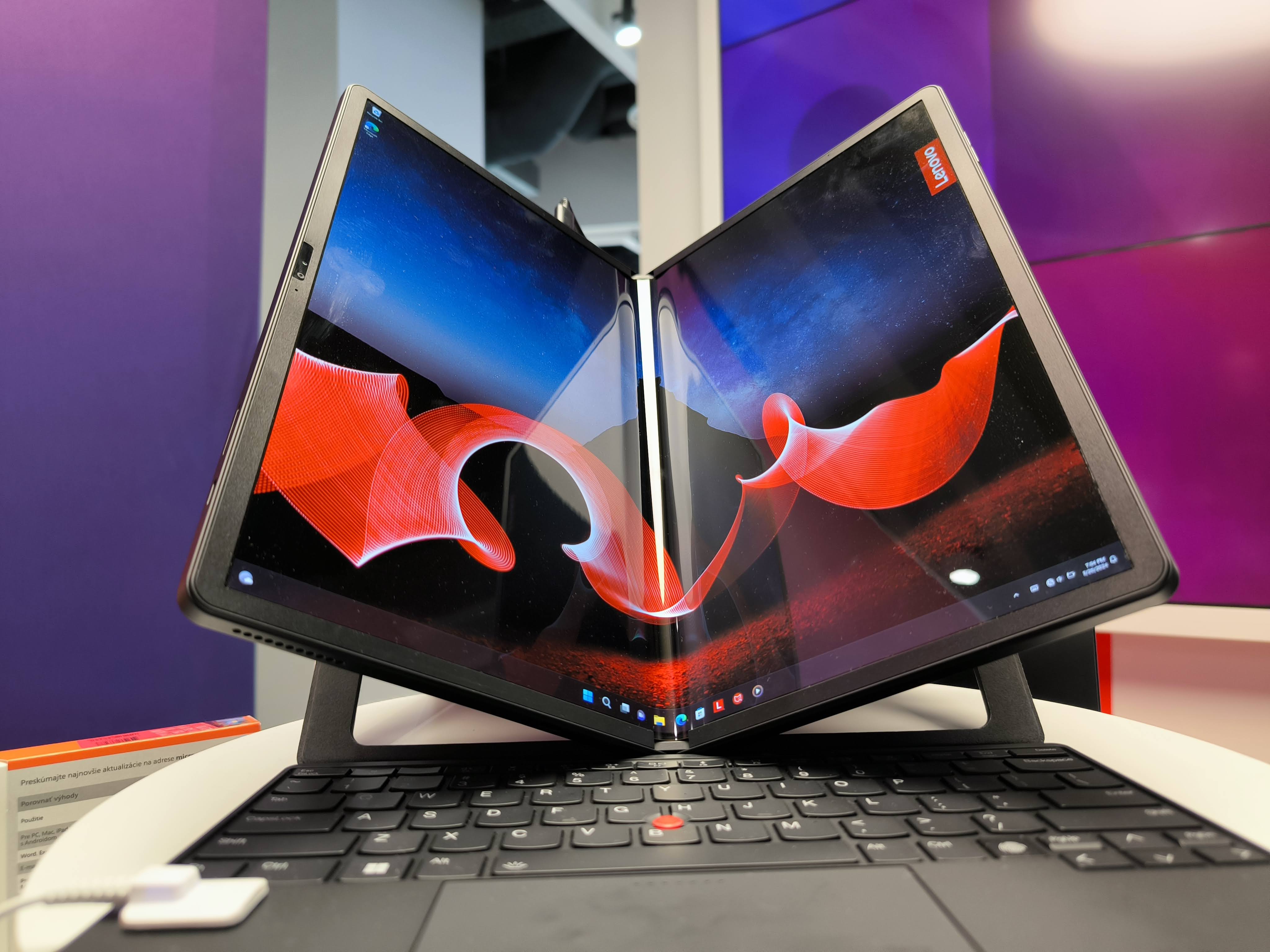 Ďalšou nemenej zaujímavou novinkou bolo zariadenie - ThinkPad X1 Fold. Tento skladací tablet poháňa Intel Core i5/i7 12th vPro, ktorému sekunduje 32 GB RAM a až 1 TB vnútorné úložisko. Nemenej zaujímavý je aj displej novinky, ktorý má v otvorenom stave "plných" 16,3 palcov, s rozlíšením 2560 x 2024 pixelov. Batéria má v základe 48 Whr, ale v rámci konfigurácie je možné rozšíriť jej kapacitu o ďalších až 16 Whr. Vďaka základnej kapacite batérie je zariadenie schopné pracovať na jedno nabitie až 4 hodiny.