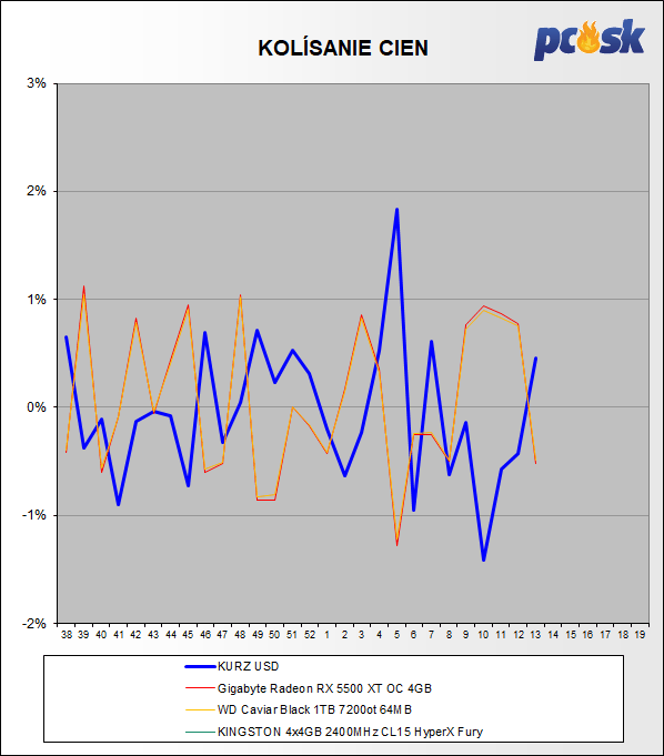 Posledné týždne priniesli hlavne zražovanie. Najväčšie zmeny zaznamenali pamäte. Kurz dolára stúpol o 0,03%. Príjemné čítanie Vám praje Pavel Čech.