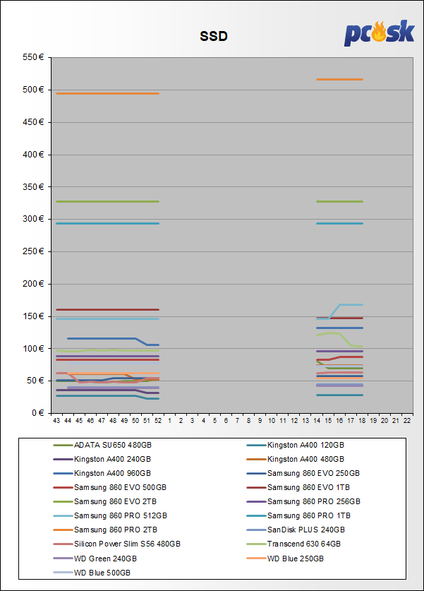 Pevné disky menili ceny od +2,8% do -0,3%. U SSD boli zmeny až do -15,3%.