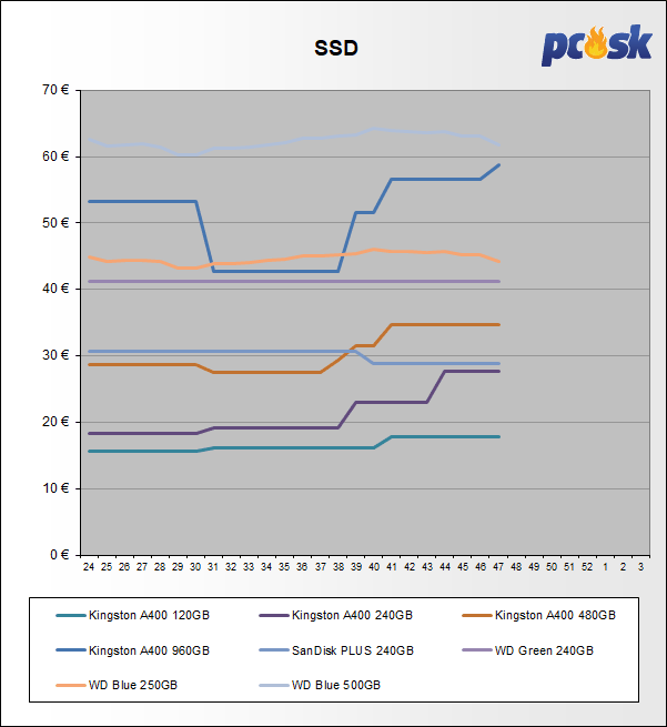 Platňové disky menili ceny do -2,3%. U SSD nastali zmeny od +7,9% do -2,1%.