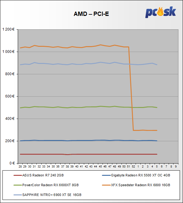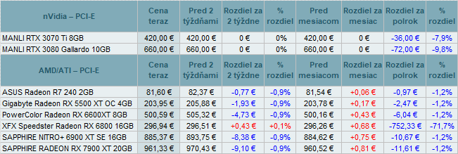 Na poli grafických kariet sa menili ceny len u AMD a to od +0,1% do -0,9%.