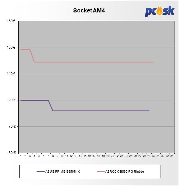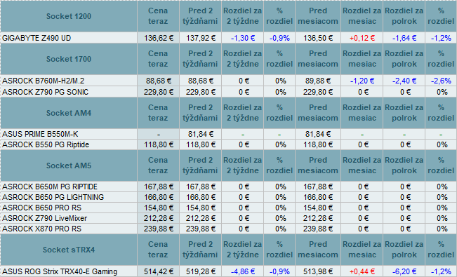 Základné dosky menili ceny len mierne do -0,9%. Z prehľadu vypadol model ASUS PRIME A520M-A II/CSM pre socket AM4.