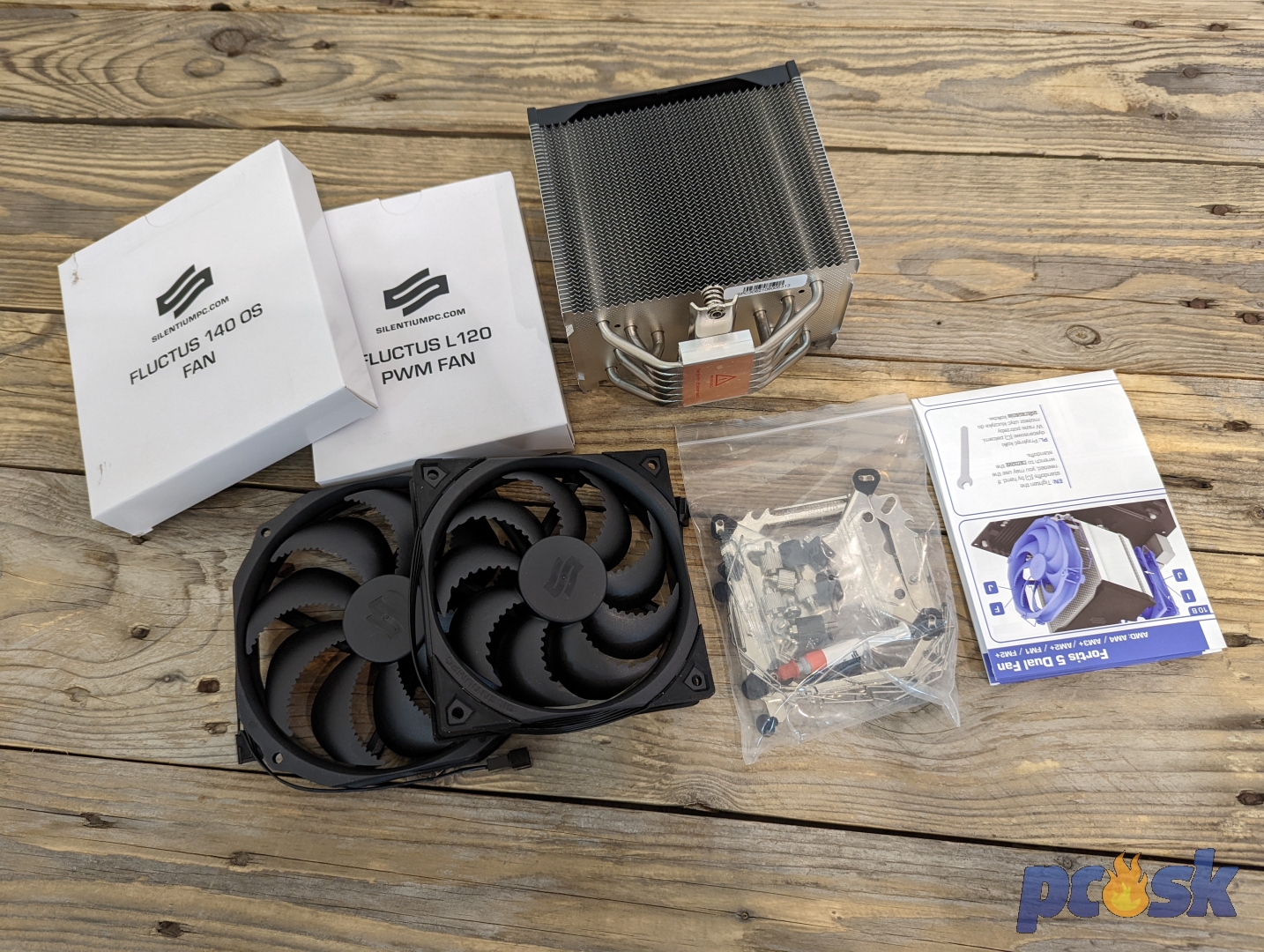 V balení nájdete okrem chladiča dva ventilátory Fluctus o veľkosti 140 a 120mm (SilentiumPC má v ponuke Fortis 5 s jedným ventilátorom a Fortis 5 Dual s dvoma ventilátormi). Push/Pull konfigurácia by mala zlepšiť prietok vzduchu a rýchlosť akou je teplo z chladiča odvádzané. 140mm verzia Fluctus sa montuje na prednú časť pasívu, 120mm zase na zadnú stranu.