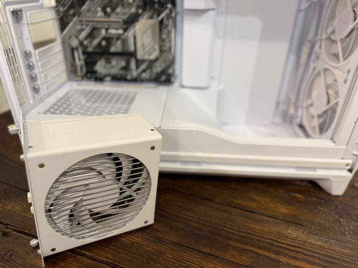 a pokračovalo skrinkou Meshify 3XL, ktorá je rovnako biela ako samotný zdroj.
