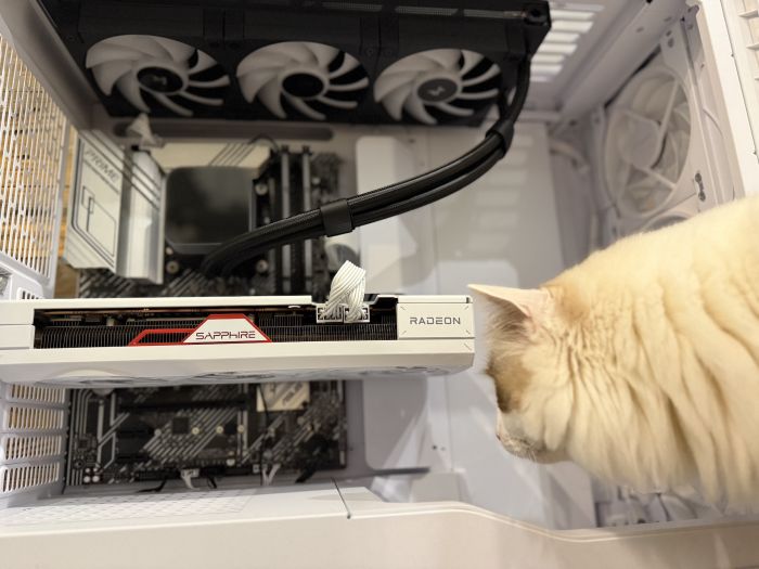 V testovacej zostave sa zase "povaľuje" biela RX 7700 XT 12GB od Sapphire. Základná doska je zase čierno biela...Puzzle začalo do seba pekne zapadať :)