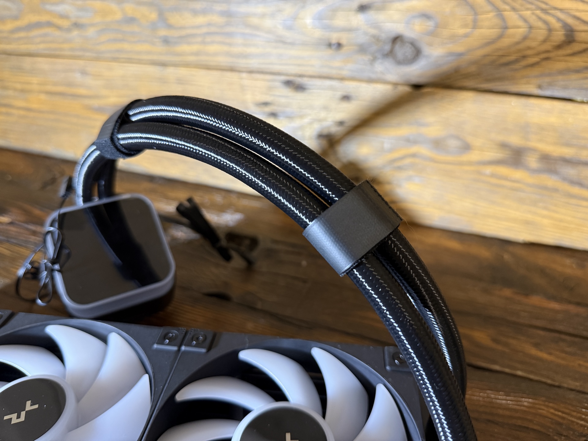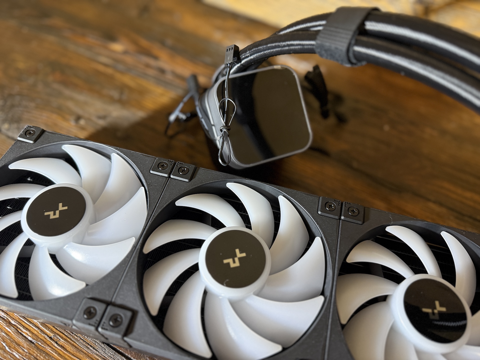 Aby Deepcool udržal čistý dizajn, na LQ360 nájdete ventilátory, ktoré sú medzi sebou prepojené (Voltage, RGB podsvietenie), takže v skrinke nemusíte schovávať „desiatky“ káblov. Mimochodom, ventilátory sú rovnako podsvietené ako LCD displej.