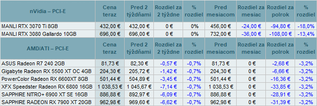 Pamäte DDR4 zlacneli do -0,7% a DR5 menili ceny od 2,9% do -0,7%.