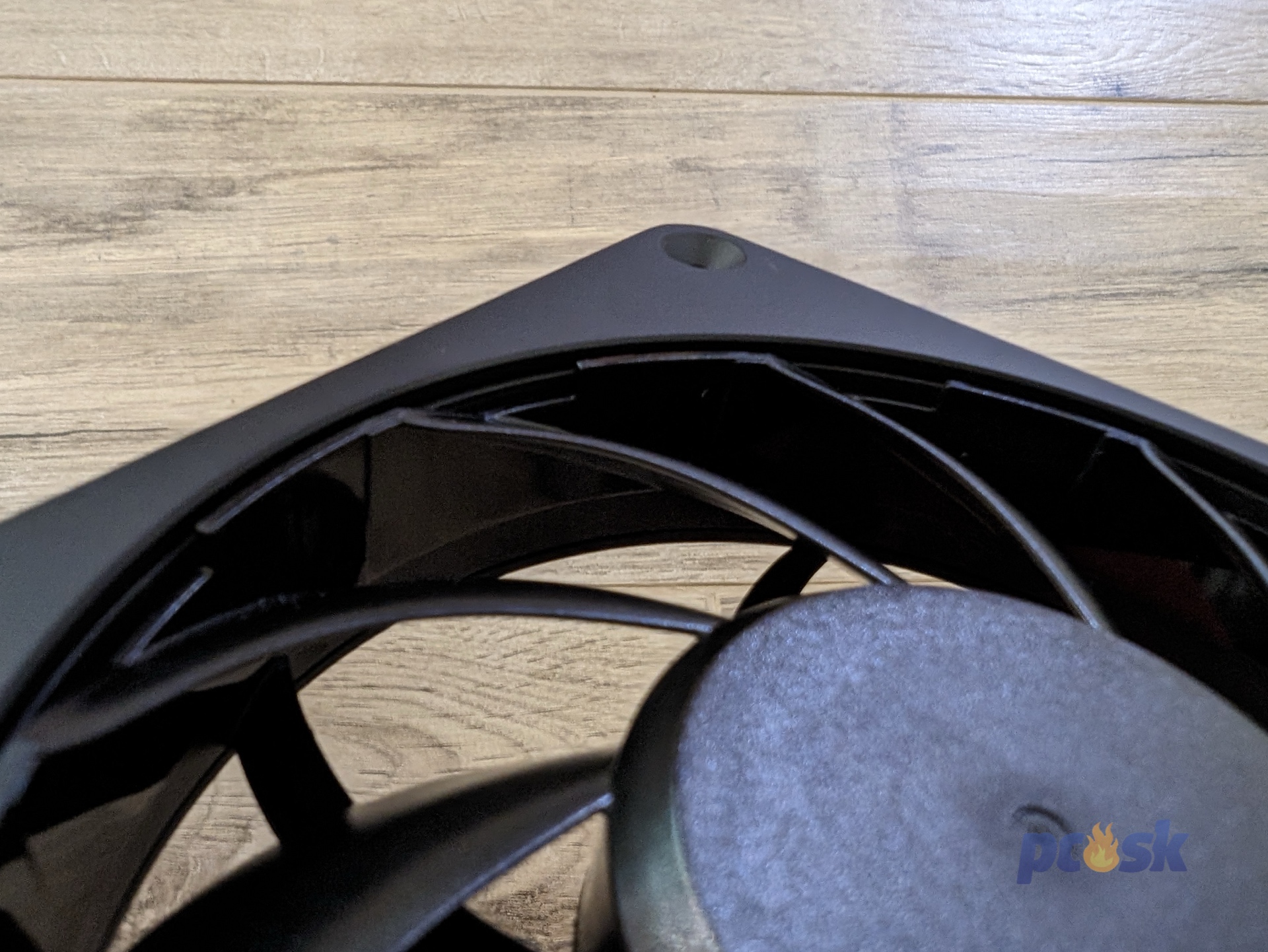 Pre lepšiu predstavu som sa snažil zachytiť rozdiel medzi NF-A12x25 a Apexom, kde je rozdiel jasne vidieť. Ventilátor Noctua má jednoducho väčšiu plochu lopatiek.