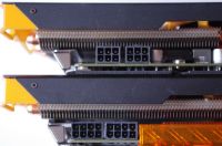 TDP referenčnej verzie je 150W, a preto je prídavné napájanie v podobe jedného 6pinu nutnosť. V tomto prípade je nešťastne umiestnený na konci karty. Po pripojení napájacích káblov potrebuje karta v skrinke o niečo viac miesta.