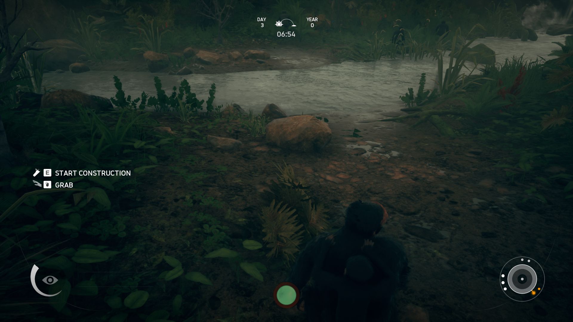 Malého hominoida som našiel až po dvoch frustrujúcich hodinách, keď som zistil, že bol od miesta klanu asi pár minút lezenia a nemusel som ísť až na okraj lesa, pokiaľ ma hra pustila. Píšem pustila práve kvôli tomu, že ak nemáte dostatok preskúmaných vecí, nemôžete zatiaľ po mape chodiť ako sa vám zachce. Keď zájdete príliš ďaleko od klanu a svojho miesta zjavia sa vám akýsi démoni, celé okolie z tmavne a musíte sa vrátiť späť.