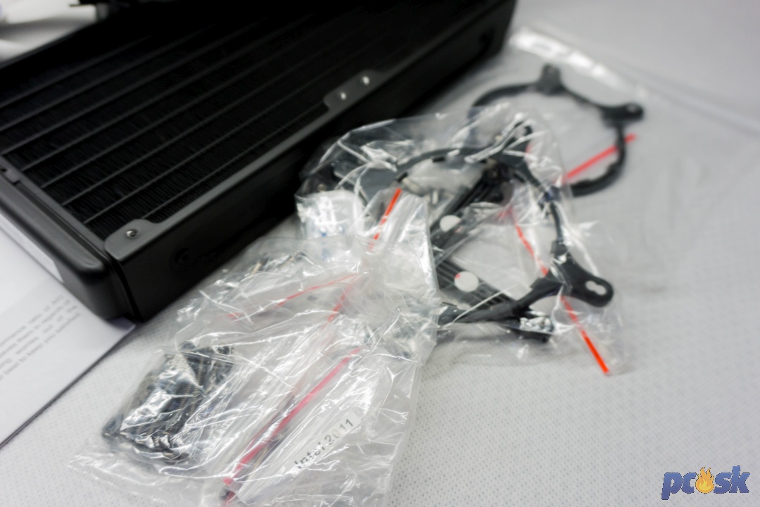 V balení okrem spomínaných štyroch ventilátorov nájdeme samotný chladič a príslušenstvo tvorené backplatom, prítlačnými kruhmi, skrutkami, manuálom a pastou MX-4. Y rozdvojky na ventilátory v príslušenstve nehľadajte. Tie sú už súčasťou samotných ventilátorov.