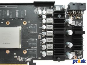 O kŕmenie jadra sa stará 6 fáz, siedma patrí pamätiam. Tie sú od Samsungu, konkrétne 8 modulov 1Gbit K4G10325FE-HC04. Ich menovitá frekvencia udaná výrobcom je 1250MHz, na karte ale pracujú s nižšou frekvenciou (1050MHz).