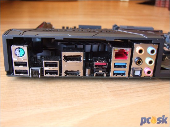 Zadný panel poskytne slušnú výbavu. Nájdeme tu ešte starodávny kombinovaný PS/2 port pre myš/klávesnicu, pod ktorým je dvojica USB 2.0 portov. Vrchný podporuje KeyBot II funkciu takže do neho zapájajte klávesnicu ak ju chcete cez túto funkciu programovať. Druhý USB port je zas vyhradený pre USB BIOS Flashback funkciu, ktorá nahrá BIOS z USB kľúča. Pre tento účel je potrebné stlačiť tlačidlo BIOS Flashback, ktoré je hneď vedľa. Ďalej nasleduje ďalšia dvojica USB 2.0 portov, DisplayPort, HDMI, USB 3.1 typu A (červené), USB 3.1 typu C, RJ-45, 2x USB 3.0 (modré), 5 pozlátených audio jackov a optický S/PDIF výstup.