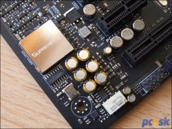 Tradičnej porcie slidov vás neušetrím ani dnes. Výrobca vybavil dosku viacerými zaujímavosťami a tak sa na ne stručne pozrime. V prvom rade je to vylepšené audio SupremeFX 2015. Výrobca na tejto doske nespolieha iba na kodek Realtek ALC1150 so SNR 115dBA, ale osadil na audio časť viacero kvalitnejších súčiastok. Medzi tie patria pozlátené japonské Nichicon kondenzátory, DAC prevodník ESS ES9023P, slúchadlový zosilňovač RC4580 2Vrms pre slúchadlá s impedanciou od 32 po 600ohmov a relé, ktorú bude eliminovať praskanie pri štartovaní systému či pripájaní/odpájaní jackov. EMI štít na kodeku a oddelenie od zvyšku PCB je už tradíciou.