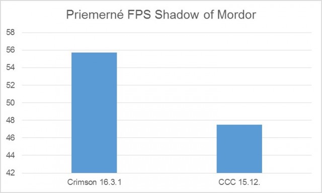 Priznám sa, že karta je pre mňa veľkým prekvapením. Výkon je priemerne vyšší o 10% než má konkurenčná GeForce GTX 960 a ako bonus k tomu dostanete širšiu pamäťovú zbernicu. Netreba zabudnúť aj na nižšiu cenu. Z tohto hľadiska je pre mňa víťaz Asus Radeon R9-380 Strix 2GB. Z mojich testoch vyplýva, že aj delta kompresiu má karta oveľa lepšie zvládnutú a preto vie obslúžiť 2GB pamäť o niečo lepšie. Na záver som sa vám rozhodol pridať test ovládača CCC vs Crimson v Shadow of Mordor. Ak ale beriem do úvahy odporúčané Crimson ovládače, ktoré v mojich testoch spôsobovali problémy, víťaz zrazu tak jasný nie je.