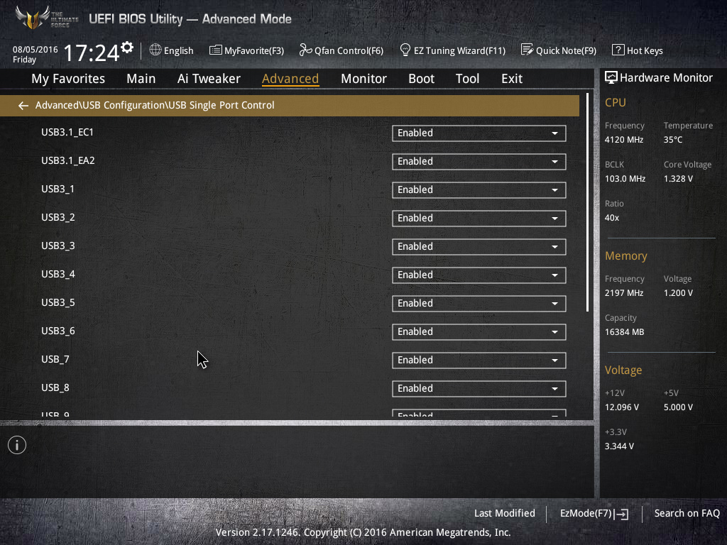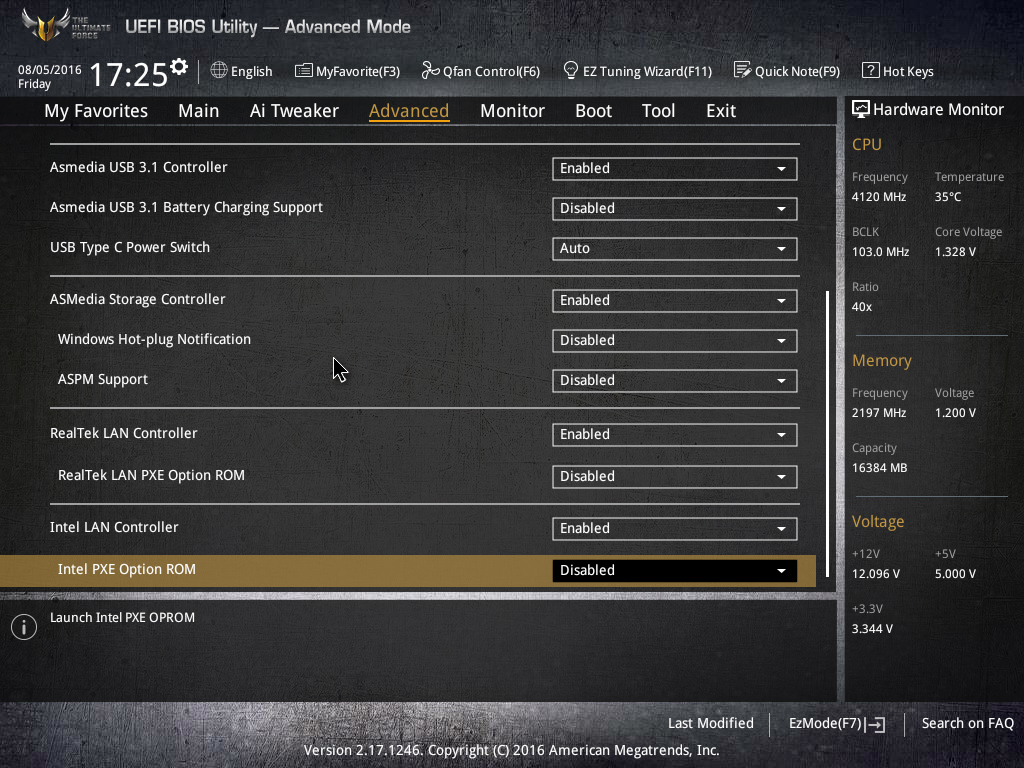 V záložke Advanced zas nájdete všetky podstatné funkcie procesora, Thunderbolt, riadenie SATA či USB portov a mnoho iného.