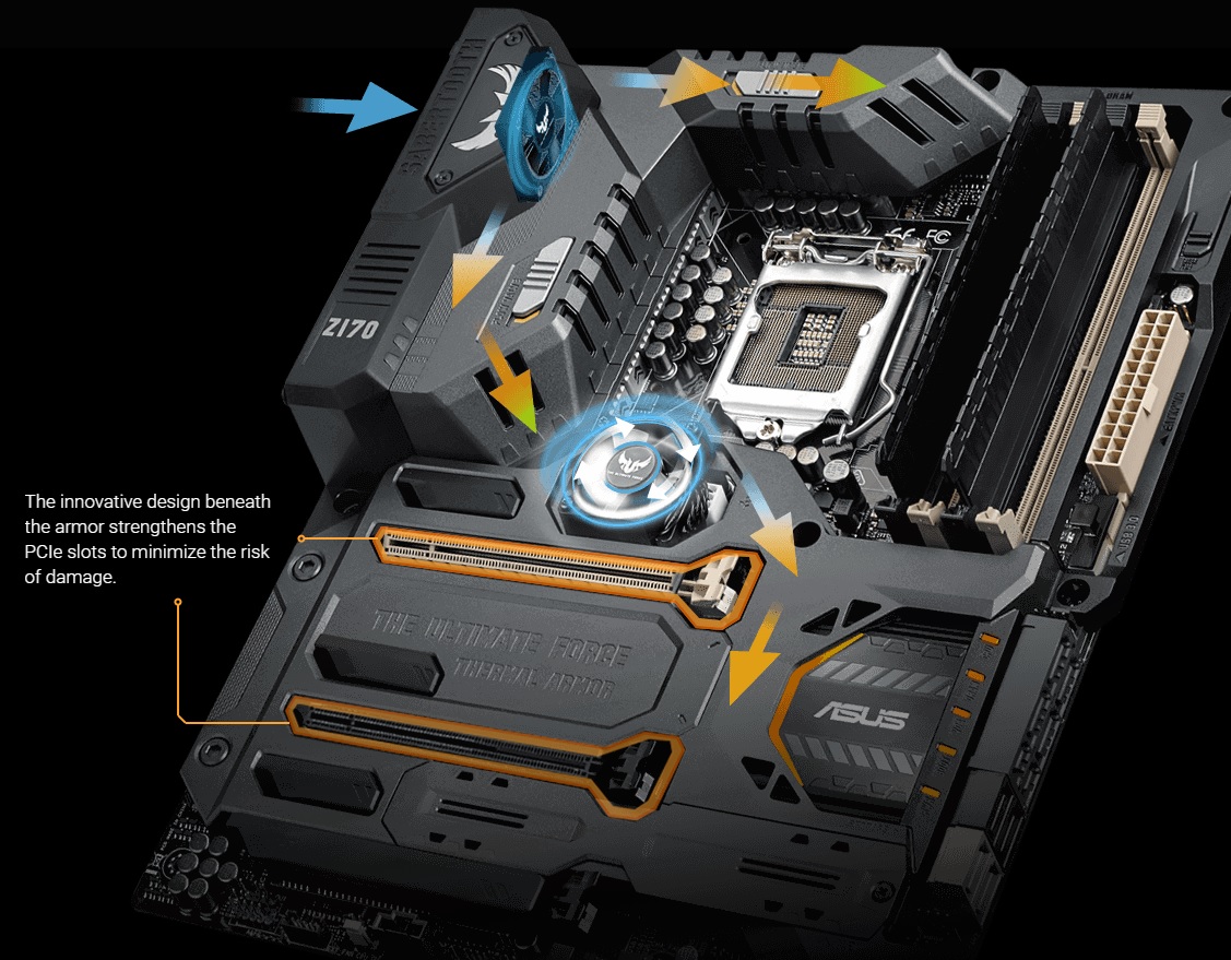 Thermal Armor je celou podstatou dosky. Nejde len o plastové pláty, ale o možnosť vháňať pod ne vzduch dvojicou malých vetráčikov a zefektívniť tak chladenie komponentov pod nimi.