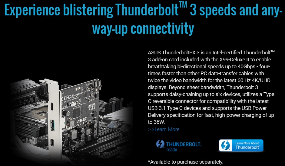 Zaujímavo vyzerá ThunderboltEX 3 karta do PCIe slotu, s ktorou získate prenosovú rýchlosť až 40Gbps. S touto kartou nakŕmite aj monitory s obrovským rozlíšením pri 60Hz. Karta ponúkne miniDisplayPort výstup, USB 3.1 typu A a typu C.