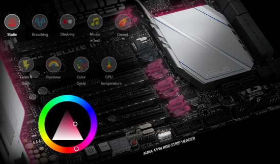 Pre milovníkov svetielok si ASUS nachystal funkciu AURA. Tá umožňuje podsvietenie dosky v audio oblasti, v oblasti čipsetu s PCIe slotov. Dostupných je pritom množstvo režimov svietenia a neobmedzené množstvo farieb takže každý si príde na svoje. Ja oceňujem, že je podsvietenie možné vypnúť.