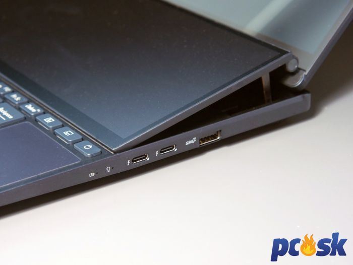 Čo sa však zmenilo, je konštrukcia. Kĺb primárneho displeja sa pri otváraní zasunie pod sekundárny, ktorý sa mierne nadvihne. To má dva prínosy – lepšiu čitateľnosť sekundárneho displeja a lepšie prúdenie vzduchu chladenia notebooku. Podobné riešenie ste už mohli vidieť v teste ROG Zephyrus, ktorý využíva podobný mechanizmus.