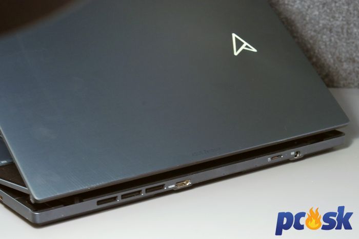 A zvyšok? Na zadnej strane. 1x HDMI, 1x rýchla čítačka microSD a 1x okrúhly DC konektor na napájanie. O ďalšie porty sa tak musíte postarať sami. Našťastie, priepustnosť Thunderbolt 4 je obrovská a dostupného príslušenstva sú mraky. ASUS nie je jediným výrobcom, ktorý sa vydal týmto smerom a obmedzil množstvo portov na minimum.