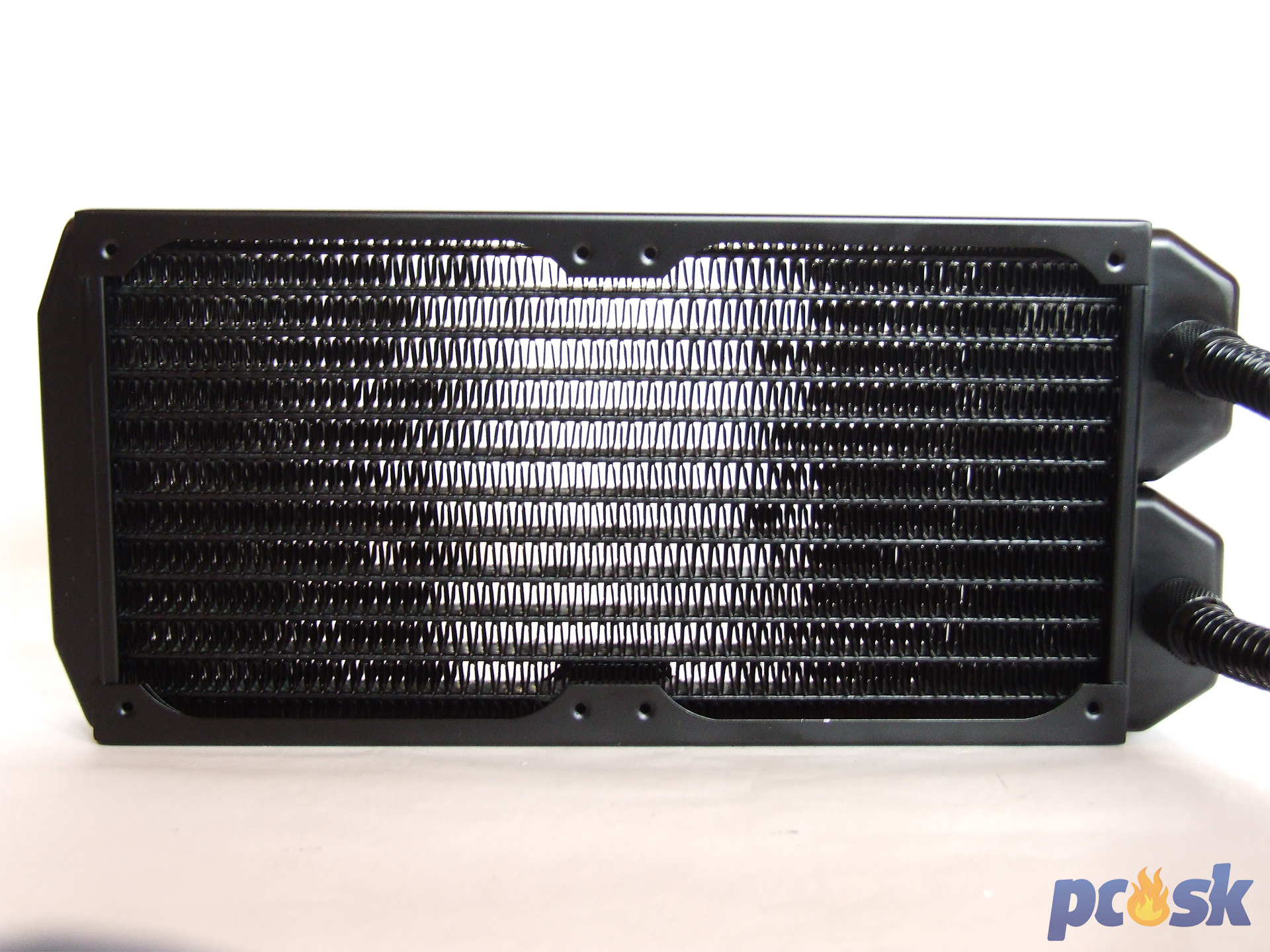 Svoj prvý vodný produkt výrobca neodflakol. Začnime radiátorom. Ten má v tomto prípade celkovú dĺžku 277mm a je kompletne medený. Určite vítaný krok nakoľko meď lepšie odovzdáva teplo svojmu okoliu a je odolnejšia voči korózii. Nejde však samozrejme o holú med ale pokrytú čiernou povrchovou úpravou. Samotné rebrovanie má tradičný vlnovitý dizajn.