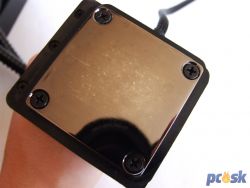 Na boku základne vyviedol výrobca 3-pinový kábel pre pripojenie pumpy a otvor, pre plnenie vodného okruhu. Ten by ste mali využiť asi raz za rok a tekutinu v chladiči vymeniť. Prítomnosť tohto otvoru chválim, nie je veľa AIO vodníkov, ktoré ho majú. Údržba chladiča je tak jednoduchšia.