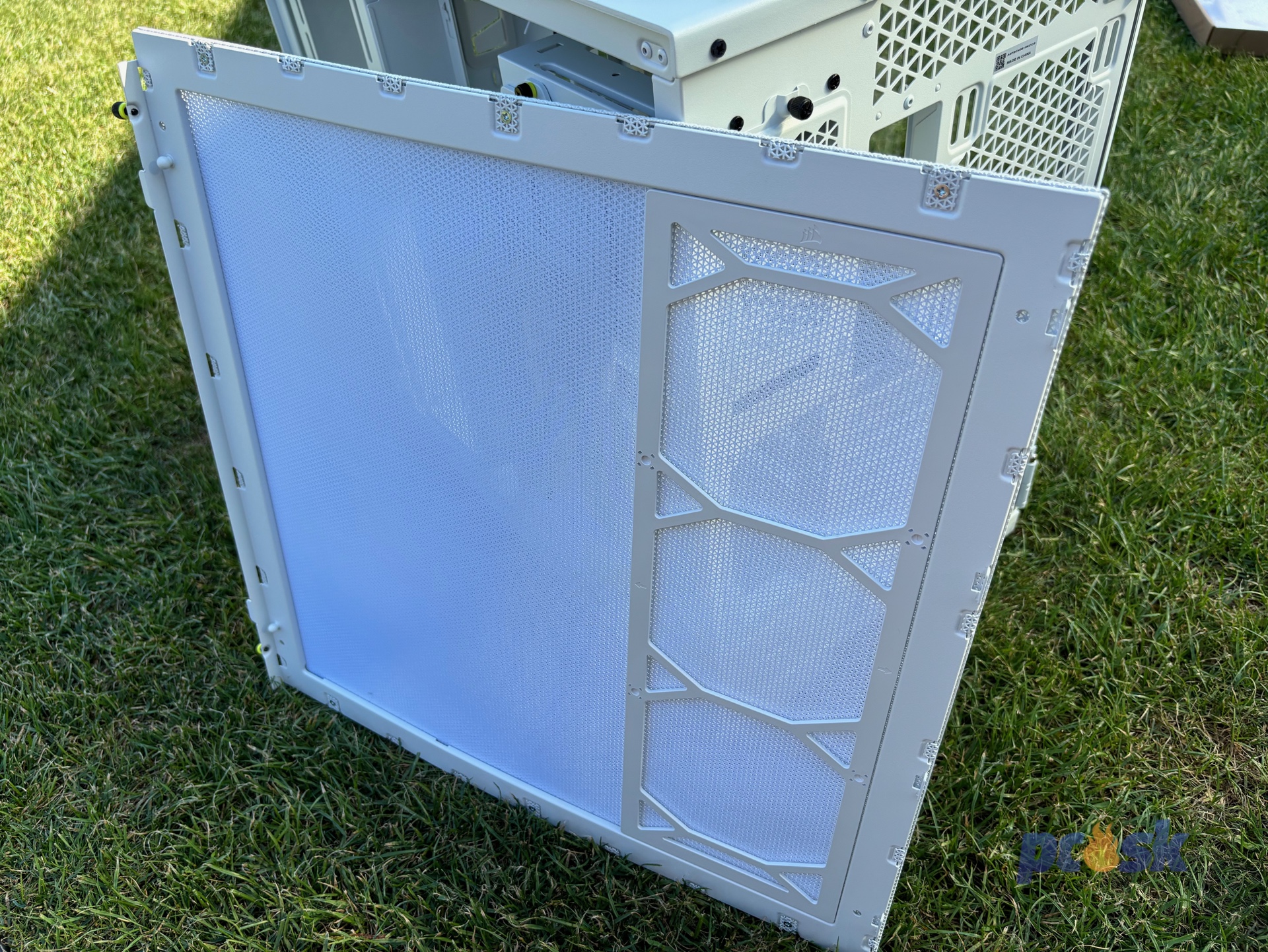 Corsair popravde na kvalite materiálov nešetril (až na bočnicu ale k tomu sa dostaneme o chvíľu) a celkovo váži skrinka takmer 14,5 kilogramu. Predný panel, ktorý sa dá vymeniť váži 1,3 kilogramu (rovnako aj horný panel). Náhradný panel (satin) váži o 2/3 menej. Celkom zaujímavé je, že Corsair pridal práve tu na hrúbke materiálu ale na pravú bočnicu nejak zabudol. Tá je tvorená primárne prachovým filtrom, čo uberá z celkovej pevnosti bočnice a preto by bol logický krok ak by ostávajúci materiál bol pevnejší a nie len obyčajný tenký plech - takže pozor, bočnicu nedávajte deťom do ruky :)