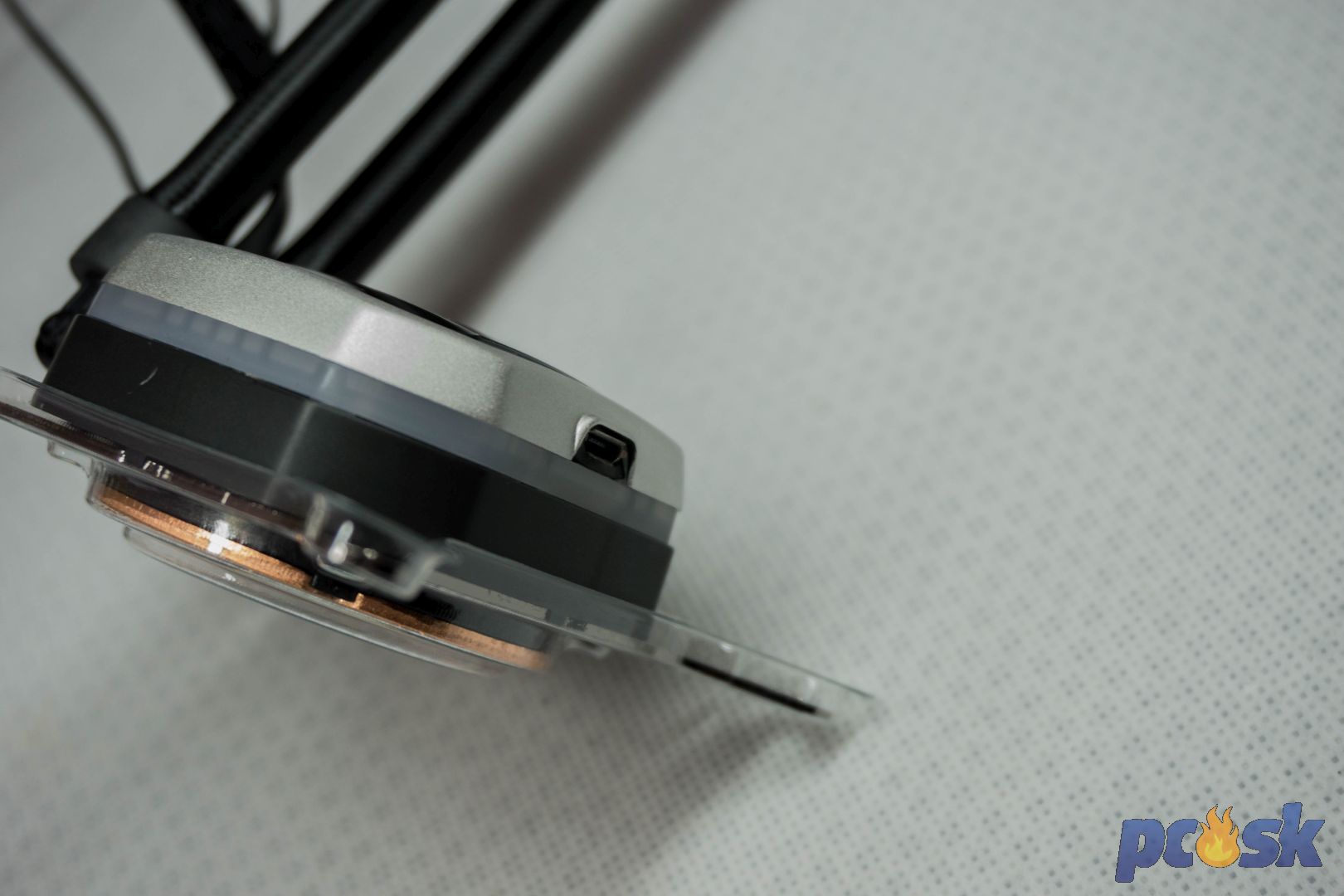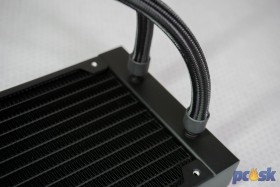 Treba však povedať, že aj malý blok vyzerá skutočne dobre. Hadice, ktoré vedú od bloku do radiátora sú poflexované, čo dodáva hadiciam dobrú ohybnosť a pevnosť zároveň. Pomerne veľkým plusom je, že takéto hadice budú pôsobiť skvelo v hociktorom builde (na rozdiel od hadíc použitých v Coolermaster či Arctic AiO chladičoch).