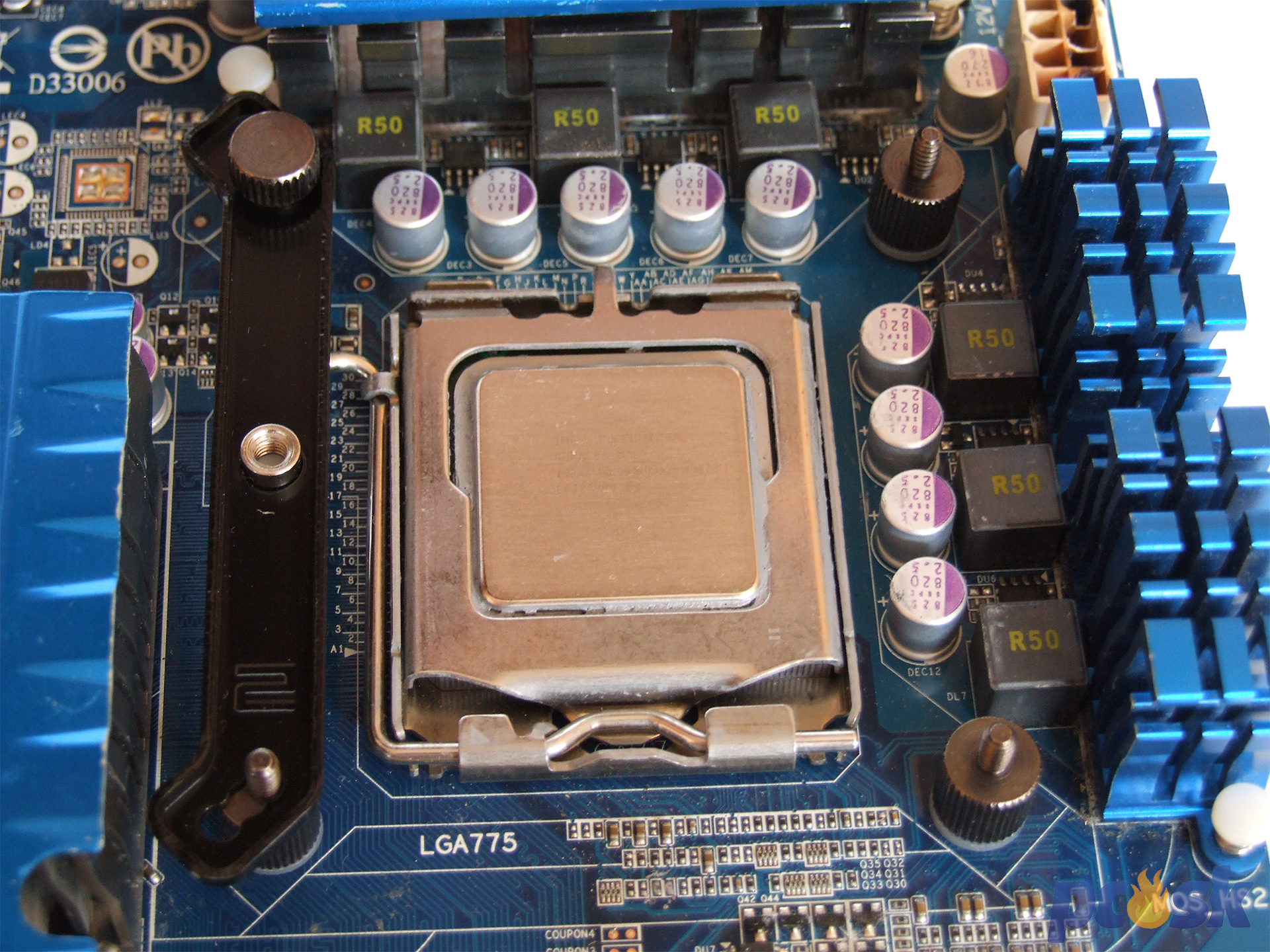 Ako „vykurovacie teleso“ slúži starý dobrý Intel Core 2 Quad QX6700 ExtremeEdition s TDP 130W. Navyše, je ešte pretaktovaný na 3,2GHz a má tiež podstatne zvýšené napätie až na 1,5V. V skutočnosti sú napätia o niečo nižšie kvôli nedokonalosti napájacieho obvodu základnej dosky. V tomto stave dokáže tento 65nm „zlepenec“ dvoch dvojjadier vyprodukovať slušnú dávku tepla a nezadá si ani s najvýkonnejšími čipmi súčasnosti.