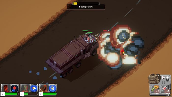 Po ceste na jednotlivé základne narazíte na hliadky, ktoré musíte zničiť. Za ich zničenie dostanete 100$, za ktoré si môžete v obchode kúpiť výstroj. Okrem hliadok po ceste narazíte na hliadkujúce vežičky (pozor aj strieľajú), ktoré jednoducho zničíte tak, že ich prejdete. Takto sa dajú ničiť aj objekty ako sú domy, autá, polia, v podstate sa dá prejsť všetko na čo narazíte. Aj hliadku môžete zničiť tak, že budete po jednotlivých autách/lodiach prechádzať a tým im budete uberať zo života. Len pozor na život vášho vozidla. Ten je tiež obmedzený a dosť výrazne ho znižujete ničením nepriateľských hliadok „prechádzaním“. V prípade, že vaše vozidlo je moc poškodené a hrozilo by jeho zničenie, vráťte sa sním do priateľskej základne, kde ho opravíte.