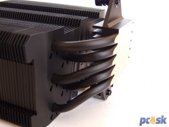 Heatpipes je 5 a aj tie pokrýva čierna povrchová úprava. Majú tradičný priemer 6mm. Na opracovaní heatpipes a vôbec na zovňajšku celého chladiča si dal výrobca veľmi záležať a nikde nie je vidieť vytečený cín či nezahladené stopy po opracovaní.