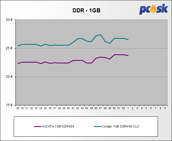 Pamäte DDR a DD2 zlacneli do 0,8%. U DDR3 nastali zmeny od +4,0% do -0,9% a u DDR4 od +6,4% do -0,8%.