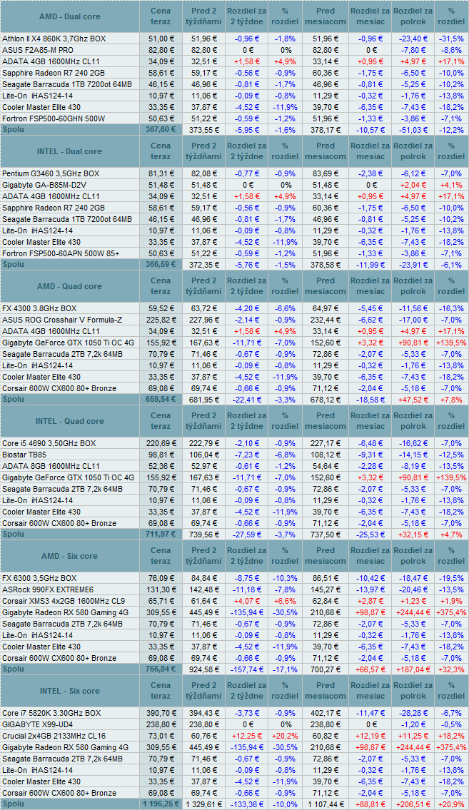 Počítačové zostavy v uplynulých 2 týždňoch znížili svoje ceny do vysokých -17,1%.