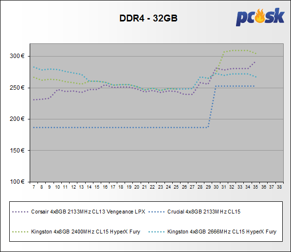Uplynulé týždne priniesli na poli DDR a DDR2 zlacnenie do 2,6%. DDR3 menili ceny od +2,0% do -6,5%. U DDR4 boli zmeny od +8,7% do -1,5%.