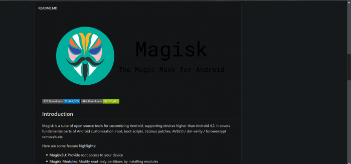 Stránka Magisk Root-u
