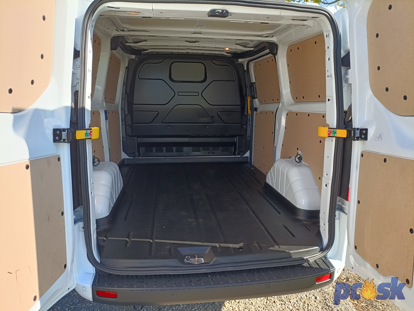Pri skúmaní zadnej časti zistíte, že testovaný Transit Custom PHEV disponuje len parkovacími senzormi, cúvaciu kameru tento model nemal. Ford však túto možnosť pre Transit ponúka a kto nad takýmto autom rozmýšľa, určite si za ňu priplaťte. Bez nej je totiž cúvanie celkom zaujímavé – hlavne pre tých, čo v takomto aute nepresedia každý deň...