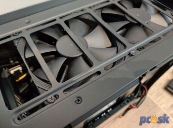 Na nasávanie alebo výfuk teplého vzduchu slúži primárne horná časť, kam dokážete dať dva 12cm ventilátory alebo radiátor o veľkosti 240mm. S chladením a airflow sa dokážete vyhrať o niečo viac v prípade, ak nepoužijete v skrinke žiadnu grafickú kartu. Vtedy stúpne celkový počet ventilátorov, ktoré môže dať do skrinky na päť.