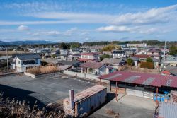 (ulice Namie-Machi. Aby nedochádzalo ku krádežiam, v týchto opustených mestách sa striedajú a hliadkujú policajti z celého Japonska. / streets on Namie-Machi. In order to prevent robberies in these abandoned cities, policemen from whole Japan participate on patrols in these areas)