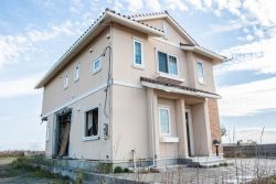 If You looked at this house from the front, You probably would not guess there is something wrong about it. But reality is way different... This picture also clearly shows how tsunami has "bitten" into the house.