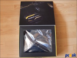 Krabica ide nabok, zvedavý som na obsah. Okrem E-ATX dosky prihodil Gigabyte aj bohatšie príslušenstvo. Okrem manuálov a DVD so softvérom nechýbajú SATA káble potiahnuté textíliou či až štvorica SLI mostíkov. Výrobca pribalil aj jeden 2-Way CrossFire mostík, ktorý už býva viac raritou ako povinnosťou.