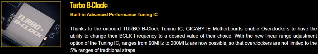 V minulej recenzii som spomínal, že Intel u Skylake procesorov zmenil spôsob taktovania cez BCLK a frekvencia BCLK už nie je viazaná na frekvenciu PCIe. Gigabyte podobne ako MSI umiestnil na dosku externý generátor taktu, vďaka ktorému je možné meniť BCLK v jemných krokoch a dosiahnuť tak lepšie výsledky a stabilitu.