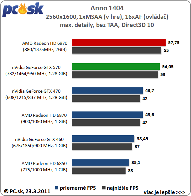 GeForce GTX 570 s 1.28GiB pamäťou v nerovnom boji s dvoma Gigabajtmi Radeonu HD 6970. V ktorých hrách a nastaveniach využije HD 6970 obrovskú Vram vo svoj prospech?