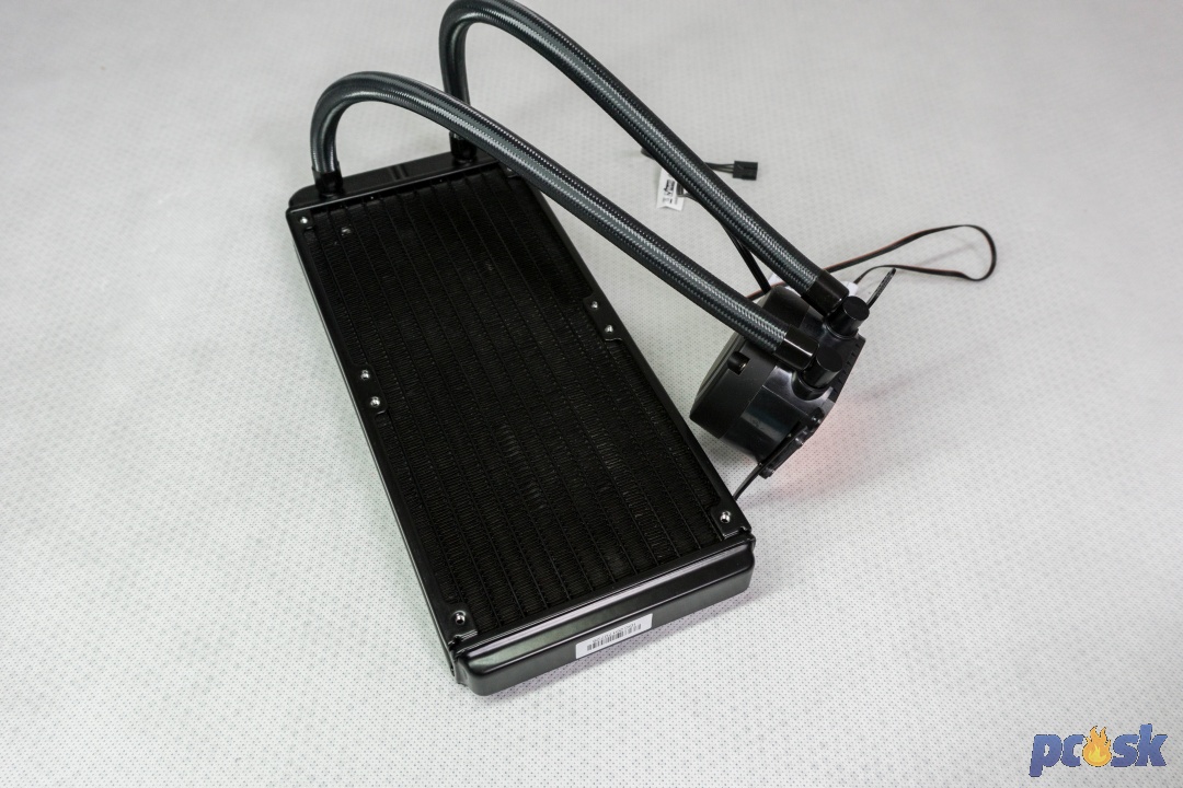 AiO chladiče od seba väčšinou rozlišuje hlavne dizajn CPU bloku a materiál hadíc. U radiátora sa toho moc vymyslieť nedá. Auraflow 240 zanechá skvelý prvý dojem čo sa týka spracovania oboch spomínaných. Hadice sú potiahnuté ochrannou vrstvou nylonu, čo im dáva dobrú pevnosť, no zároveň sú aj dobre ohybné a nebudete mať tak problém umiestniť chladič v skrinke.