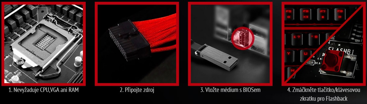 BIOS Flashback+ je užitočnou pomôckou ak sa veci nepodaria tak ako sa majú. Stačí nahrať súbor s BIOSom na USB kľúč, zasunúť do vyhradeného portu a stačiť tlačidlo na doske. BIOS sa sám nahrá a to aj bez procesora či pamätí.