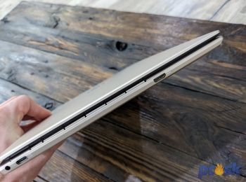 Notebook disponuje dvoma USB portami (USB-C 3.0 a klasickým USB-A 3.0), audio inputom, slotom pre SD kartu a HDMI výstupom.