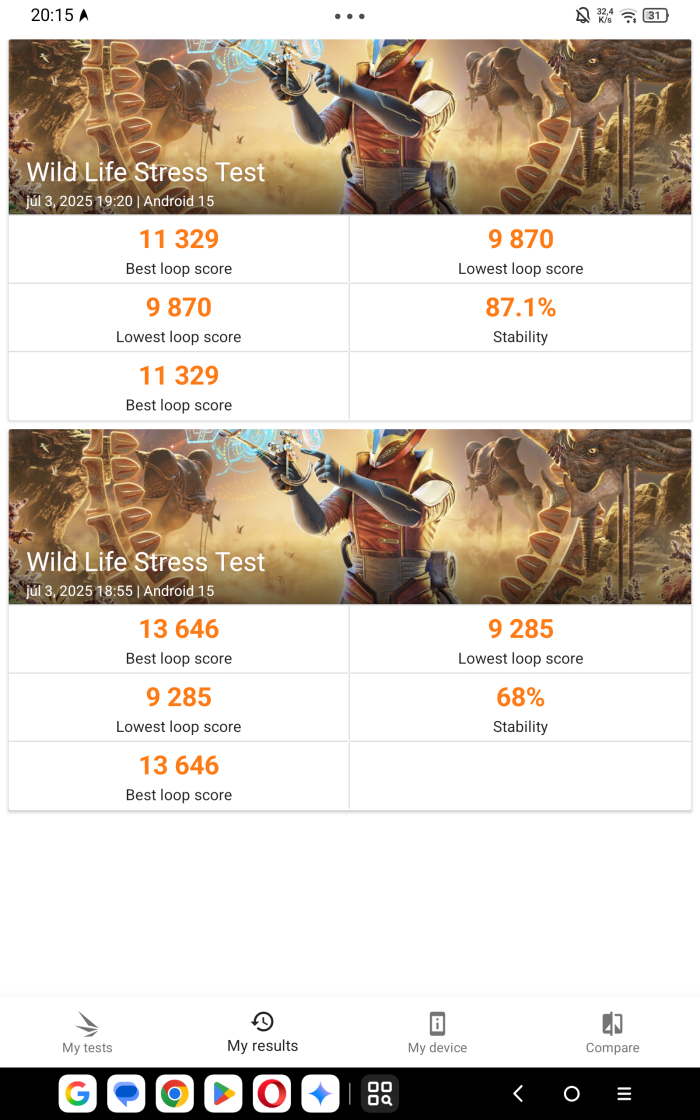 V testoch si Legion Tab vedie na výbornú, Snapdragon 8+ Gen 1 je ešte stále "aktuálny" high-end čip. Benchmarky ako Geekbench 6 a 3DMark Wildlife Extreme potvrdzujú výkon na úrovni top smartfónov z predchádzajúcich rokov. Teploty sa po polhodine hrania držia na rozumých hodnotách, tablet sa síce citeľne zahrieva hlavne na zadnej strane, no výrazný throttling CPU a GPU sa nekoná. Napriek tomu mohlo by to byť predsa len lepšie, tablet oproti smartfónu má oveľa viacej miesta a možností na lepšie chladenie. Hádam ďalšia generácia bude na tom lepšie.